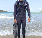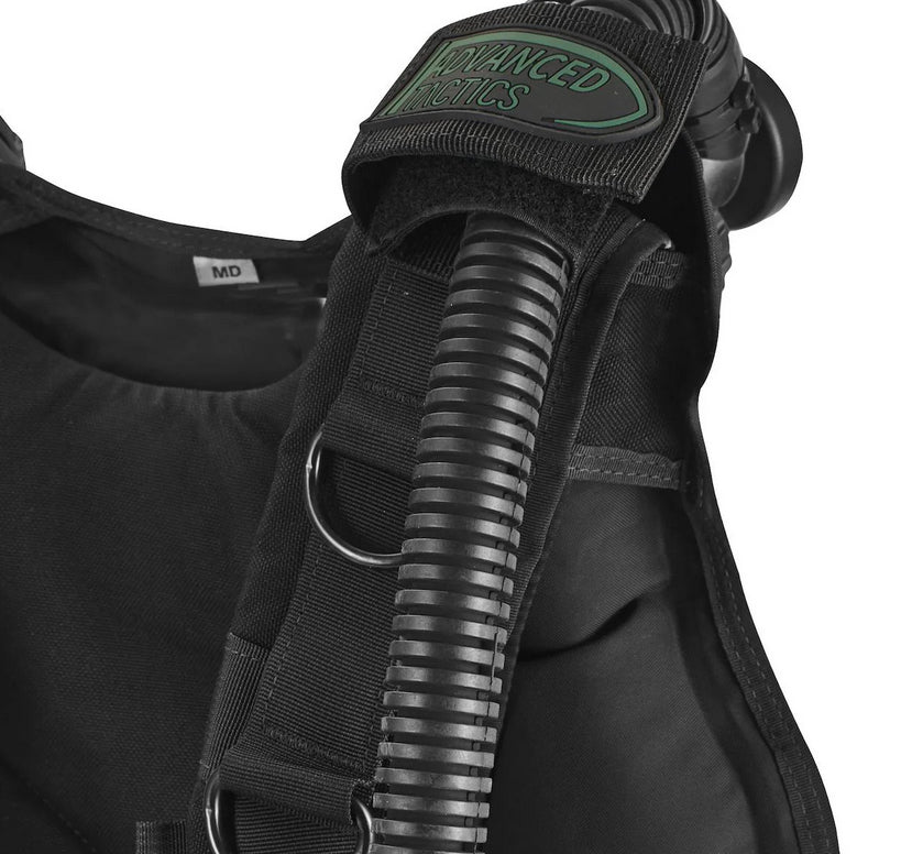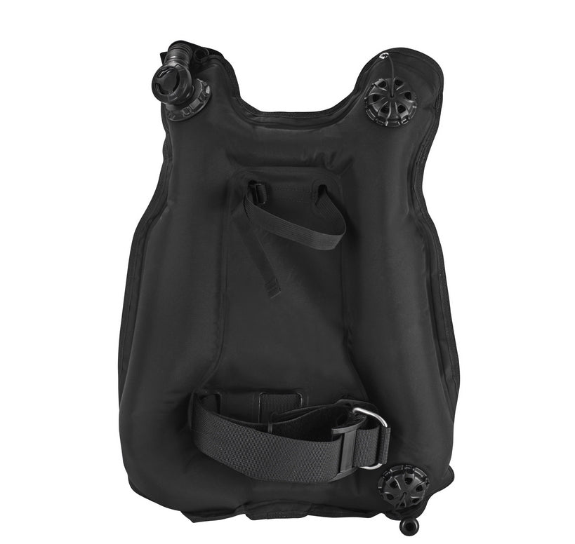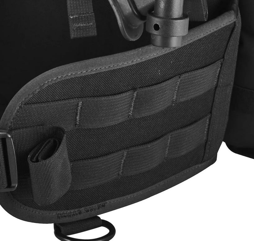 This buoyancy controller is designed for unit diving training, made of non-reflective black material. The backplate and metal rings are constructed from titanium alloy, providing overall low magnetic properties. The bladder is made of bulletproof Dyneema fabric, offering resistance to knife cuts for enhanced reliability and safety. It includes multiple weight pockets for flexible center of gravity adjustment, suitable for training in cold water environments. The bladder size can be flexibly chosen to support single or multiple cylinder tasks.