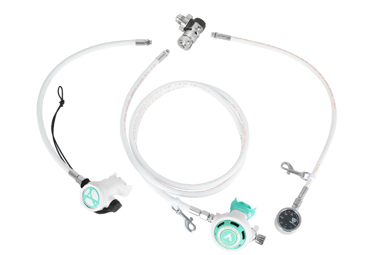 AKUANA Hogar is designed for divers with DIR or Hogarthian concept. The long hose makes it easy to share the gas. You can switch primary and backup second stages easily and rapidly. This is important when you are making technical diving in the future.This version can be updated to double tank reg set simply by adding one first stage. It is for the divers who may dive into technical world.